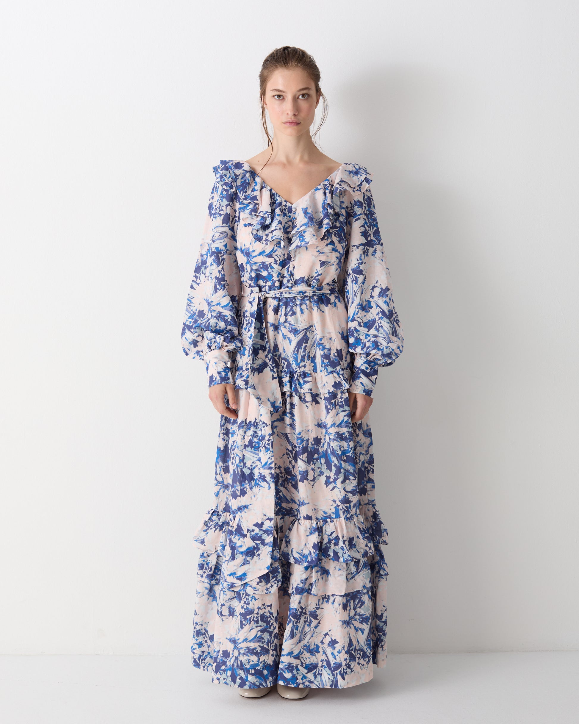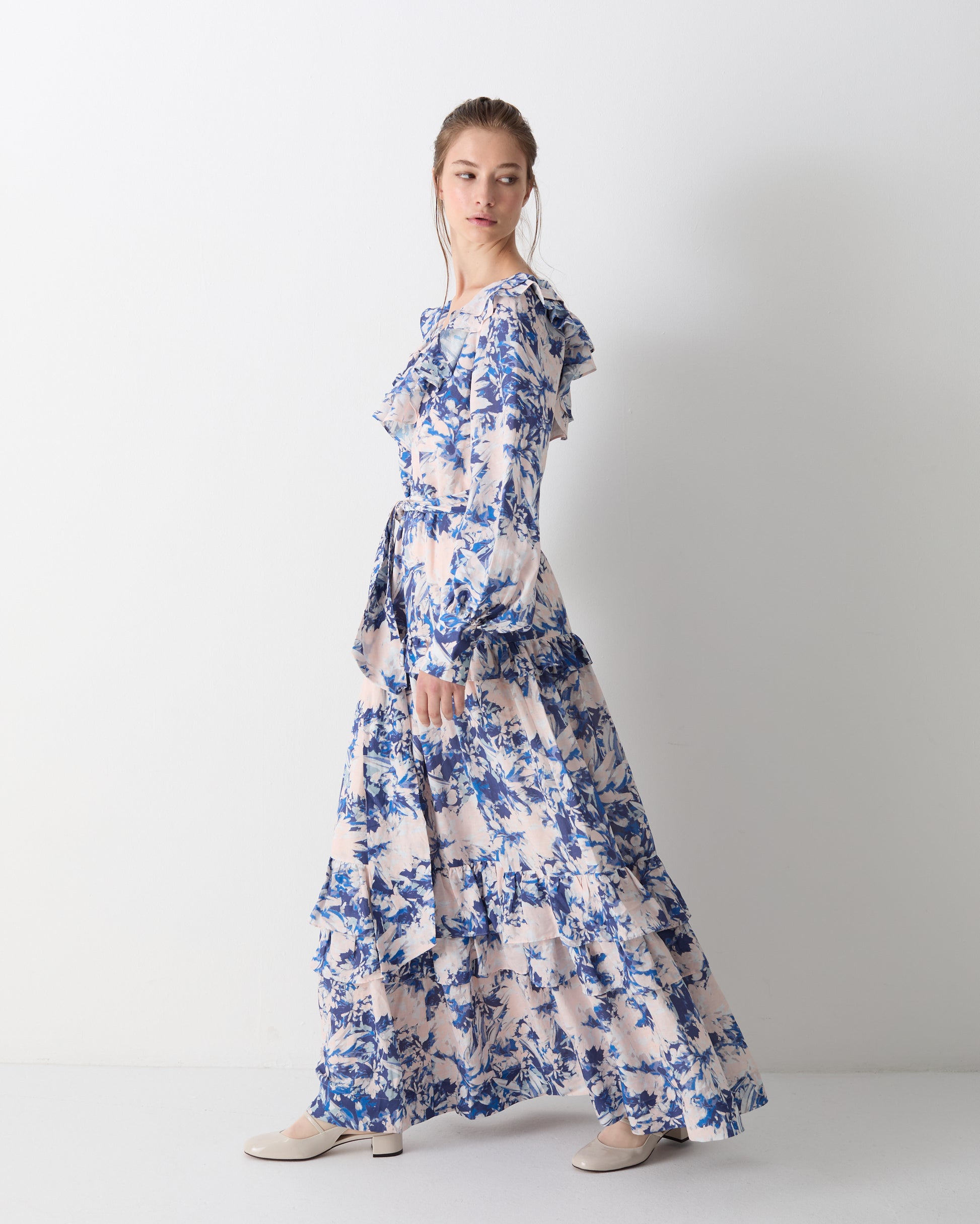 The Josephine Maxi Dress in the Blue Dahlia Print