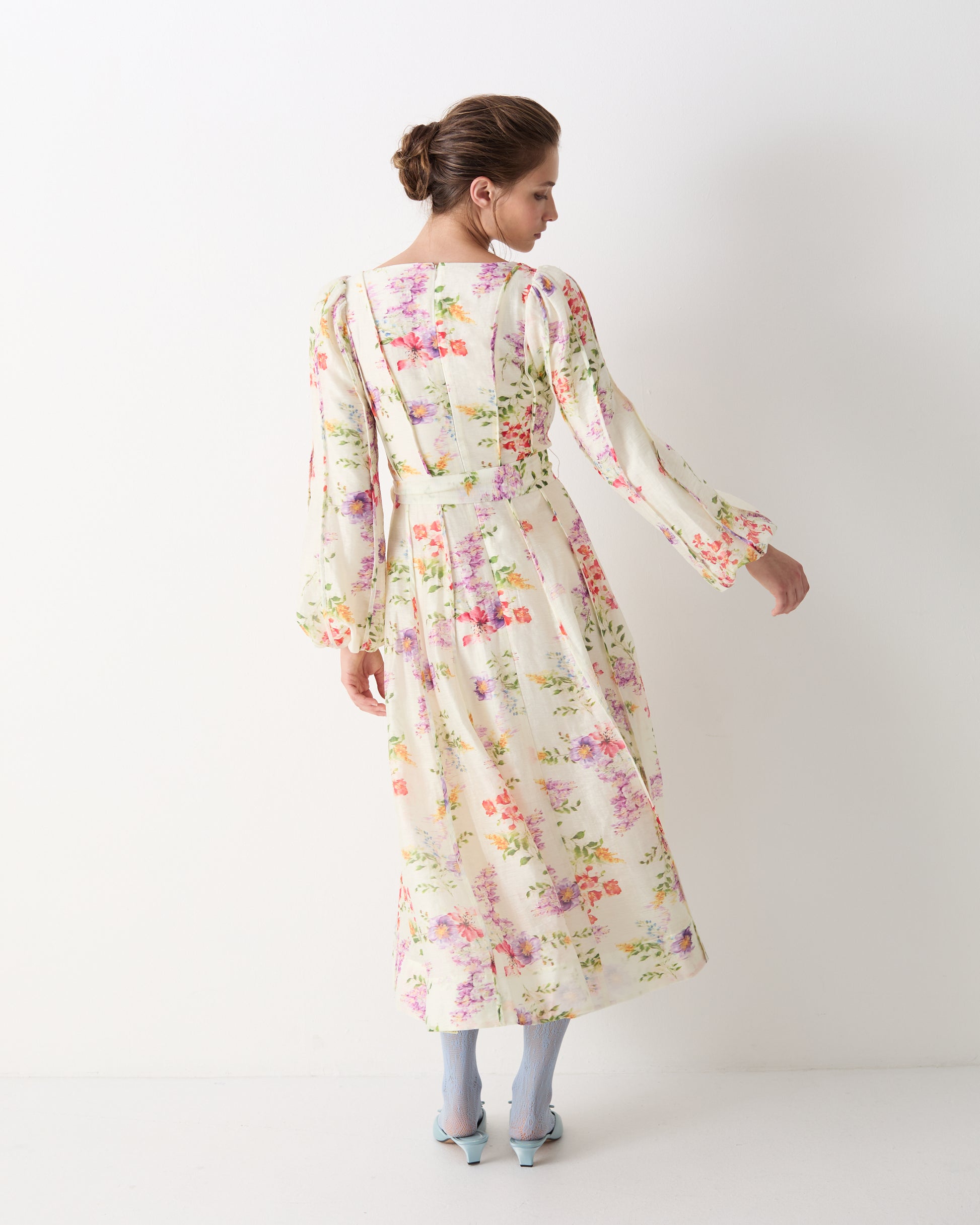 The Hayworth Midi Dress in our exclusive Spring Garden Print is the perfect choice for any summer occasion. The luxuriously diaphanous feel of the silk & cotton fabrication, complemented by the delicately coloured floral print ensures a flattering cut for all body types. Gold tone buttons and belt D ring add a touch of elegance to this stunning maxi dress. Upgrade your wardrobe with this must-have piece.