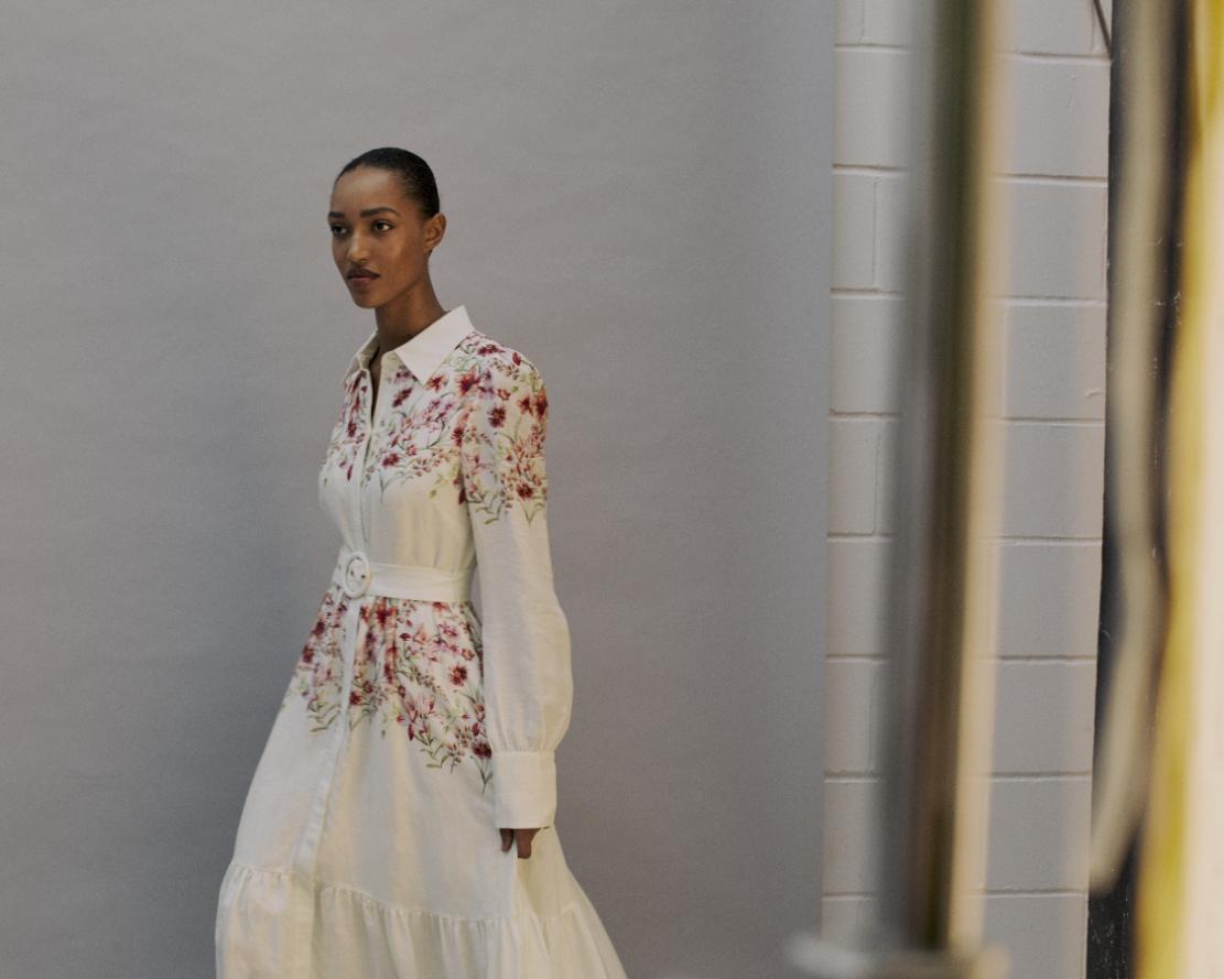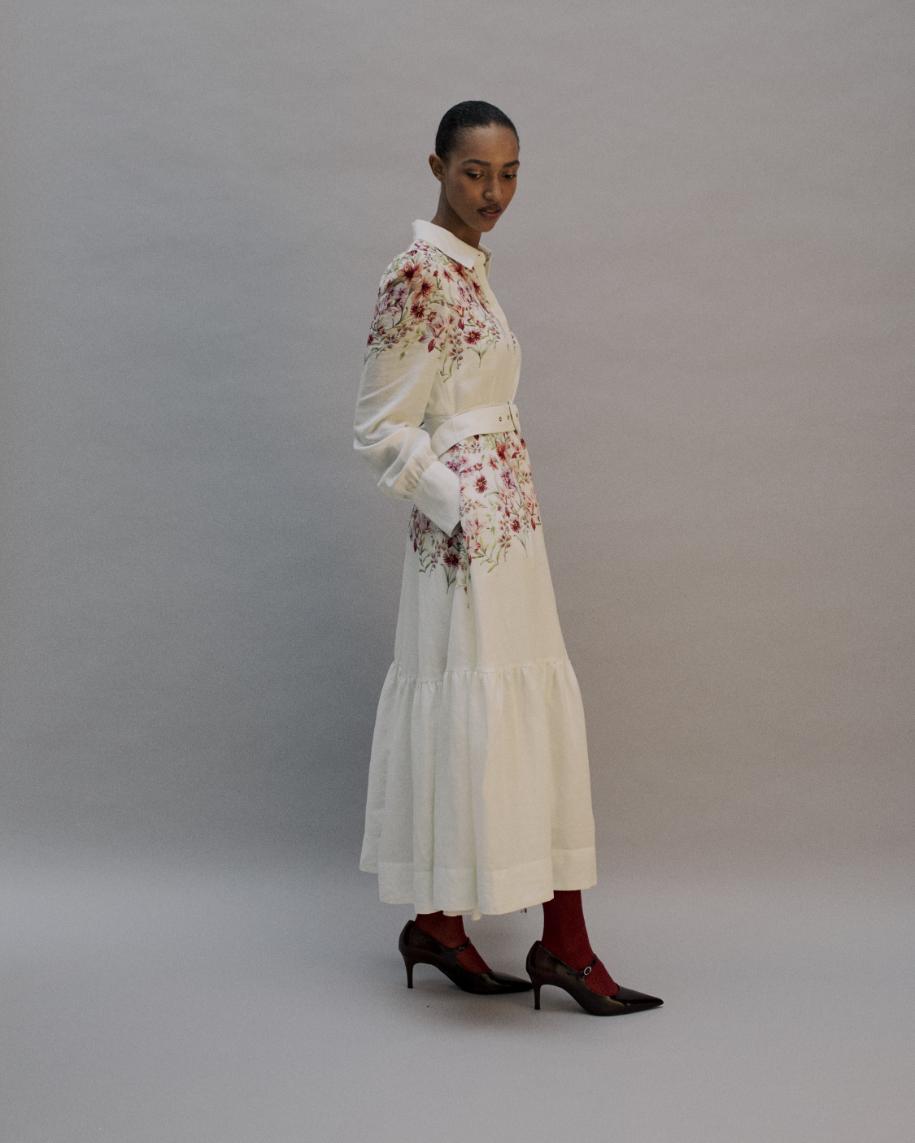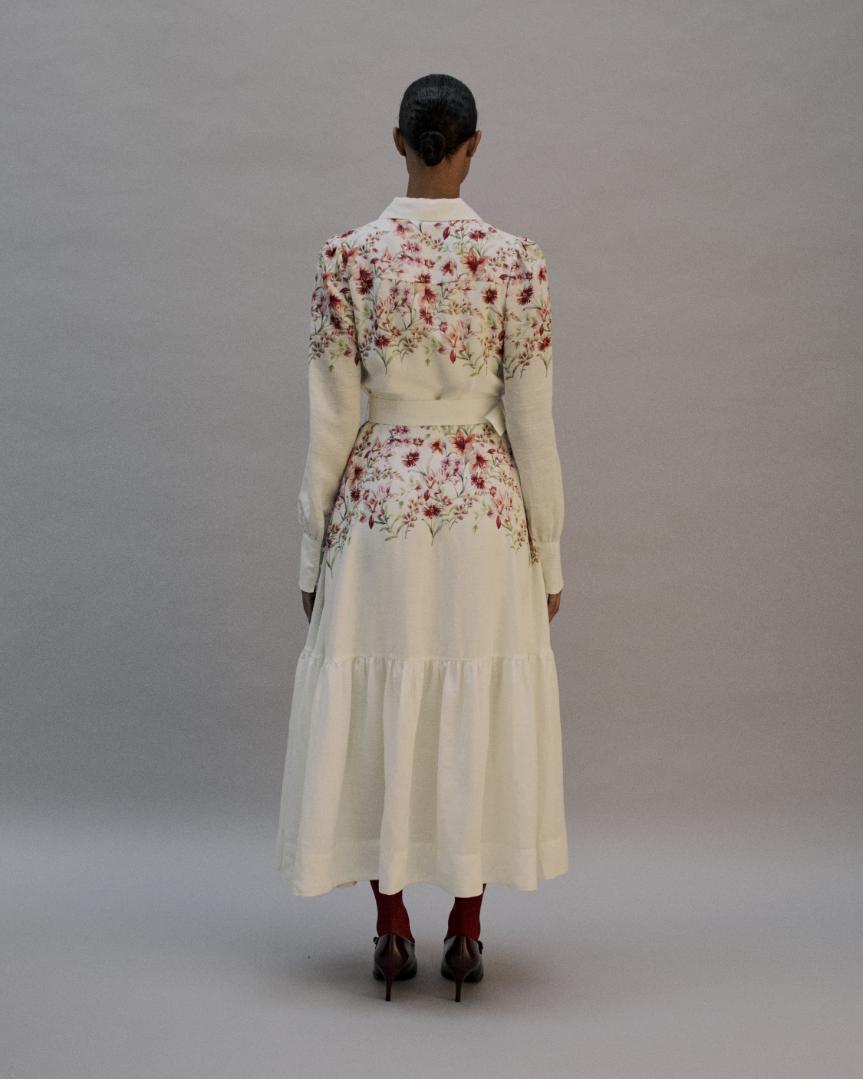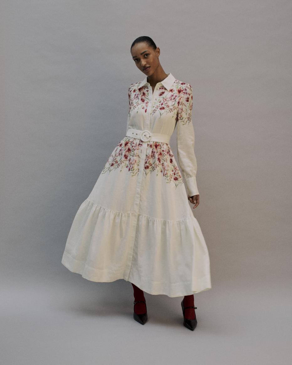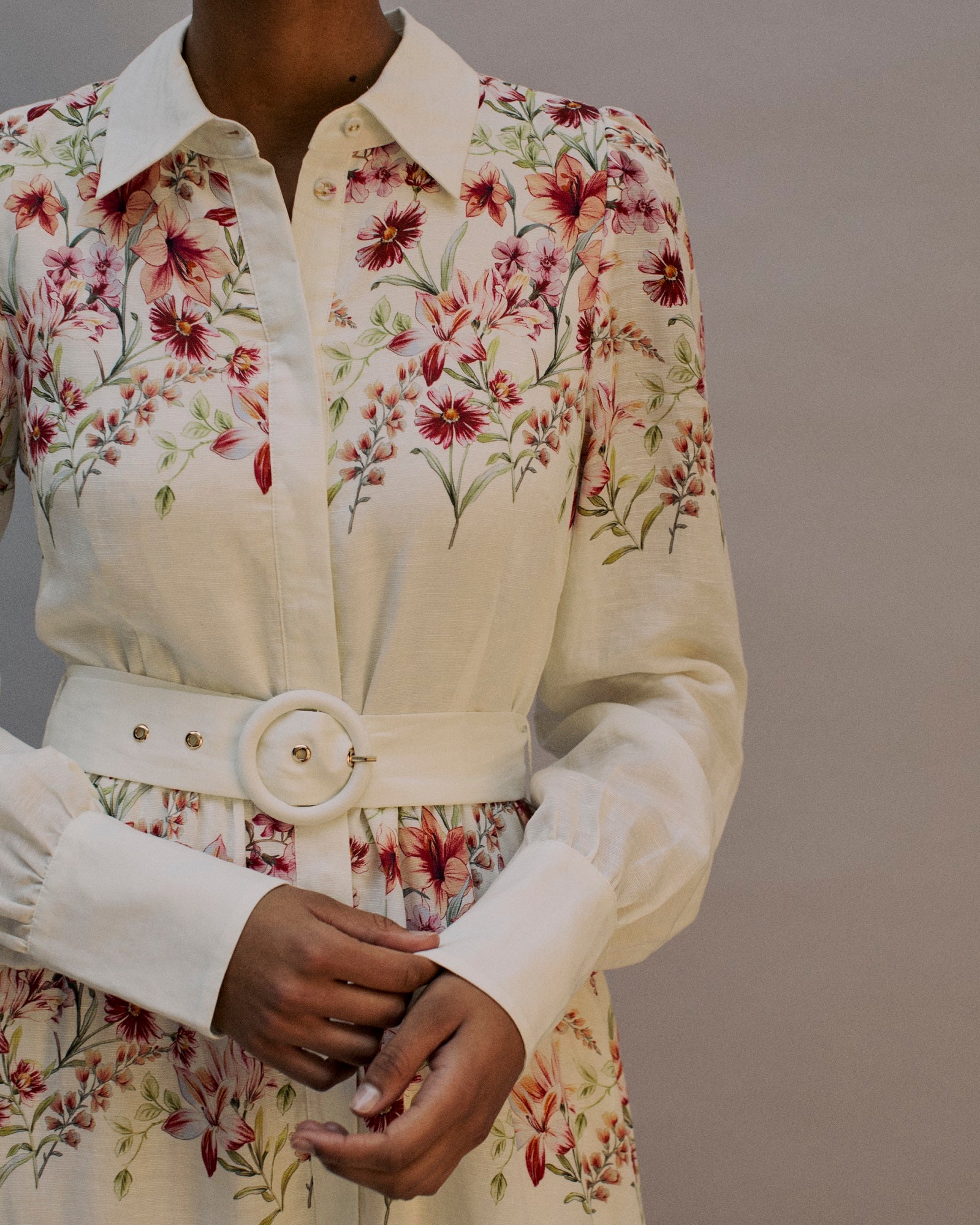The Laila Shirt Dress in the Garden Bloom Print from our Pre Fall 25 collection features a refined update to our signature silhouette. Adorned with dahlias and day lilies delicately positioned across the shoulders and waist, this dress offers a subtle yet captivating floral motif. Its design allows for versatile styling, enabling you to wear it with the desired level of modesty. Ideal for summer events, it combines elegance with comfort, making it a timeless addition to your wardrobe.