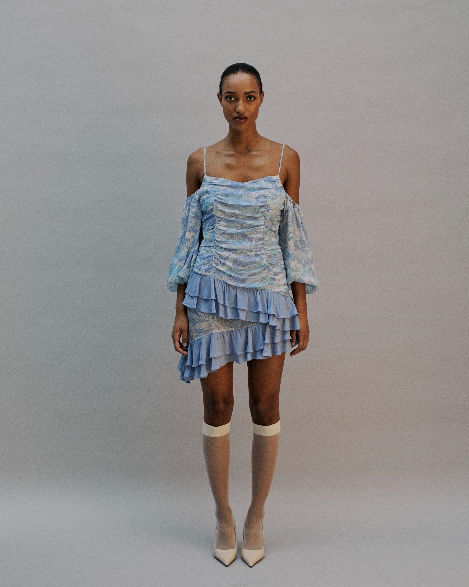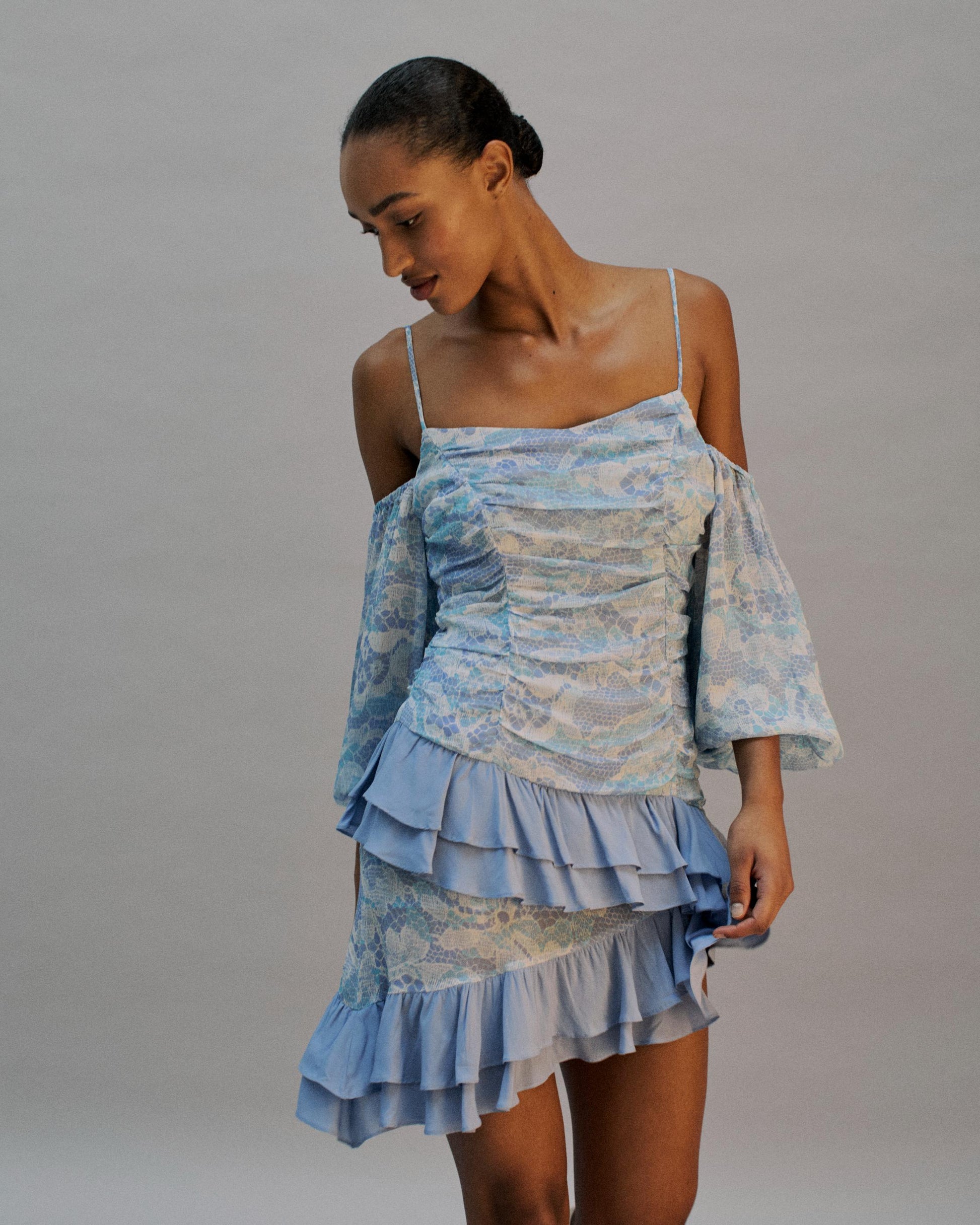 The Phoebe Mini Dress in the Bluebell Lace Print