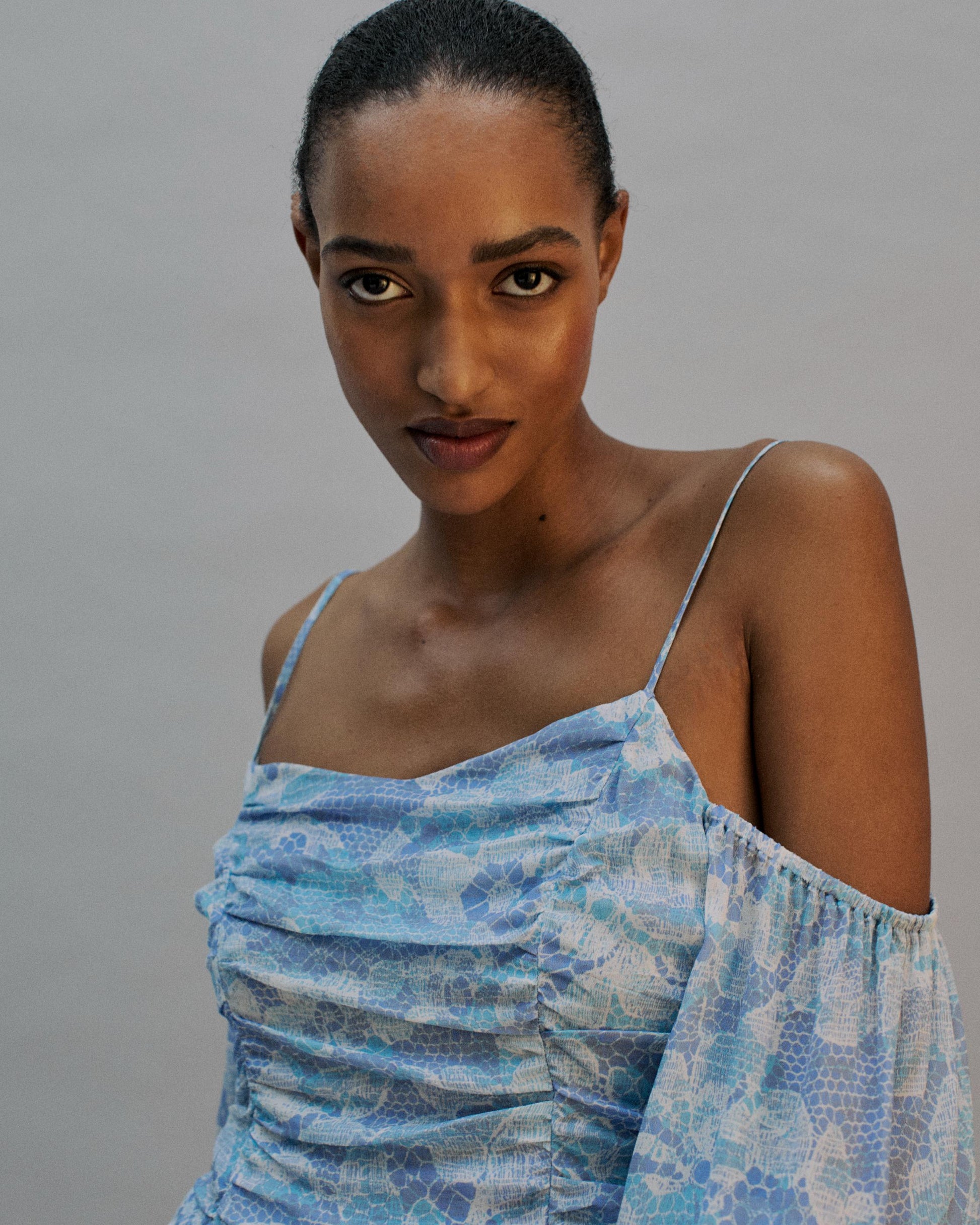 Our Model, Sofia, is 5' 10" tall, a UK size 8 and is wearing a size S.