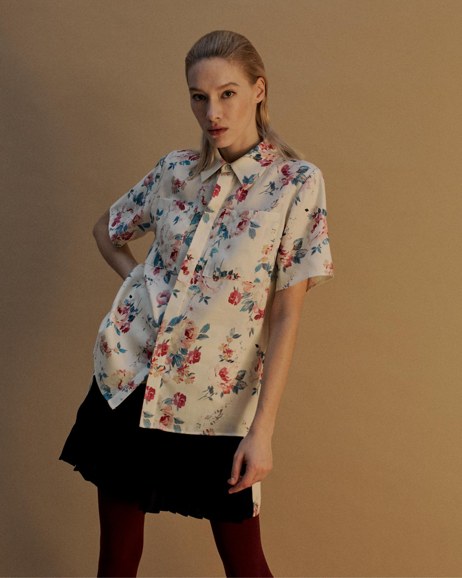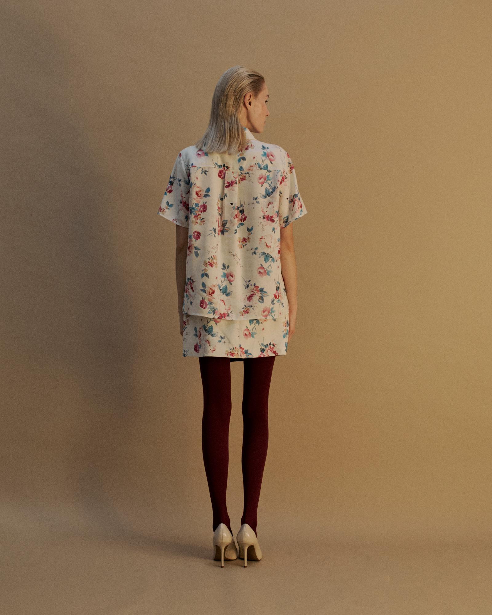 The Coco Shirt in the Floral Nostalgia Print merges masculine tailoring with feminine details. Designed with a relaxed safari style fit and modern romantic flair, this floral shirt makes a daring statement for those who embrace confident, effortless style. We love this paired back to the Belle Mini skirt for a playful occasion look.