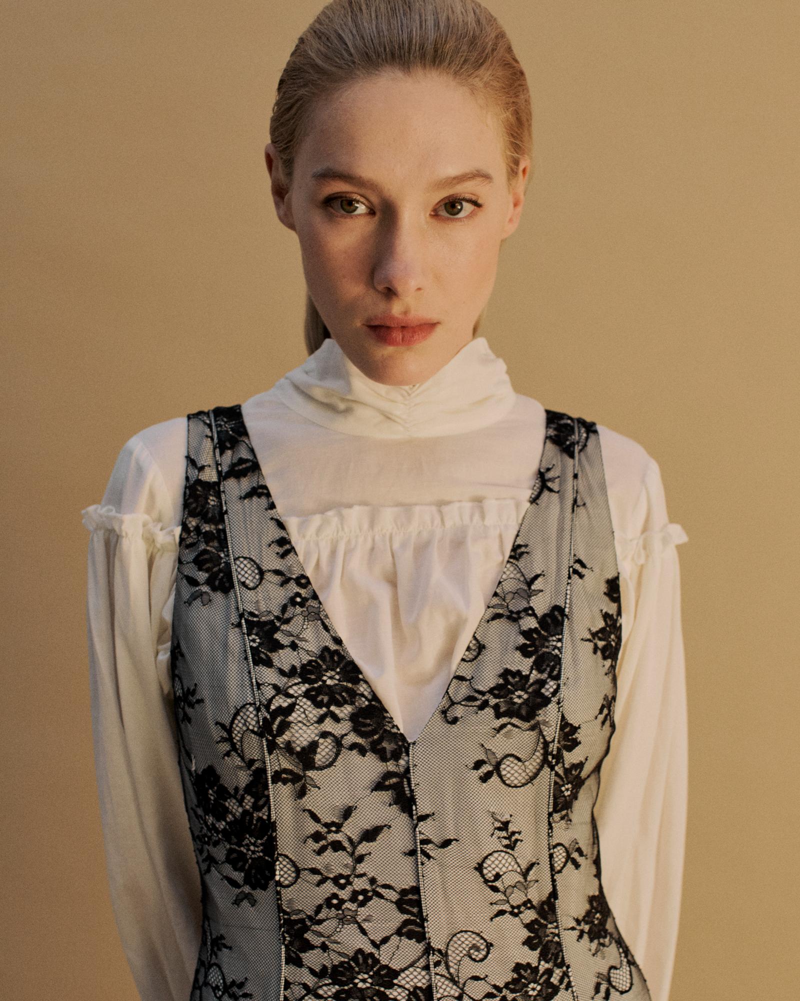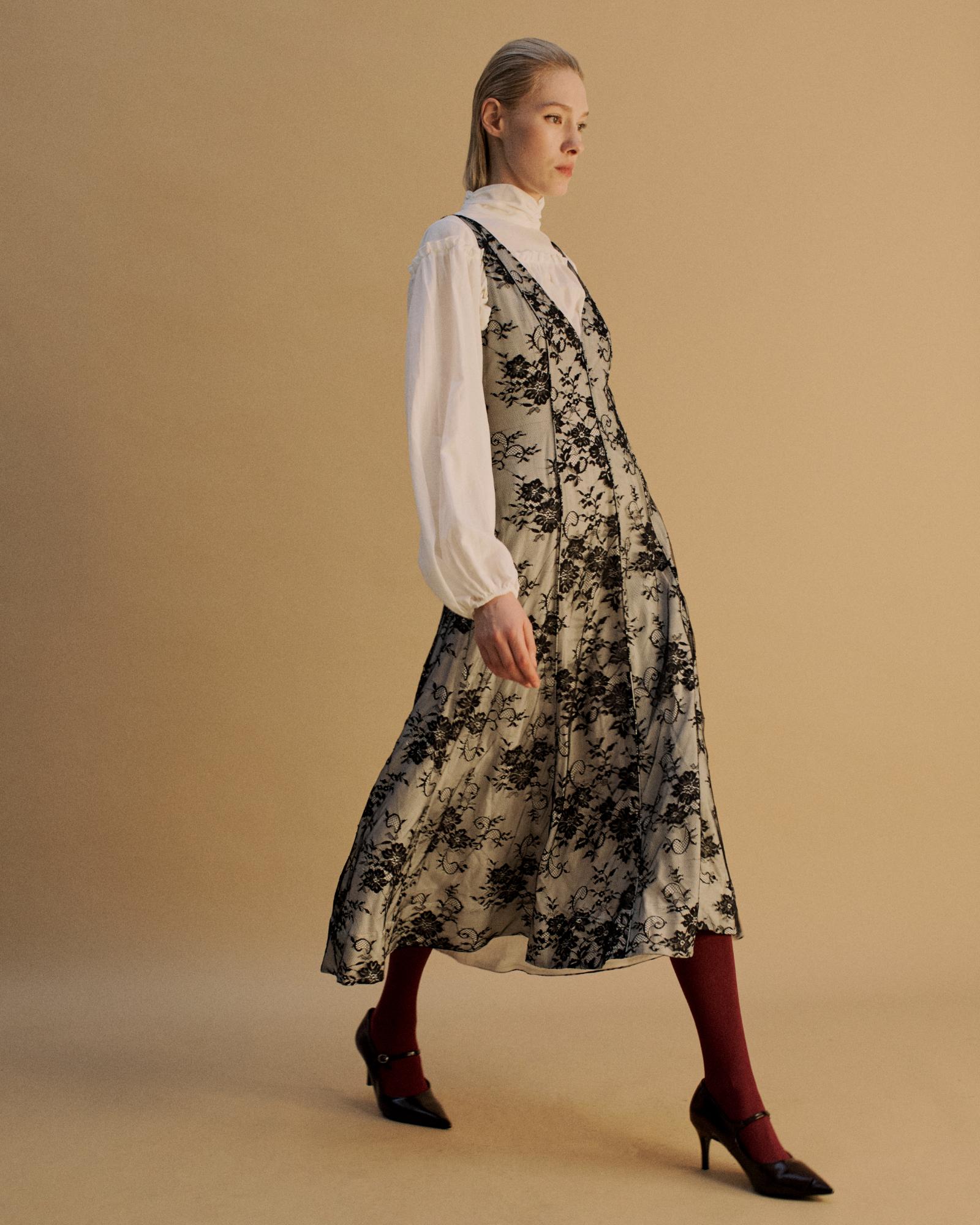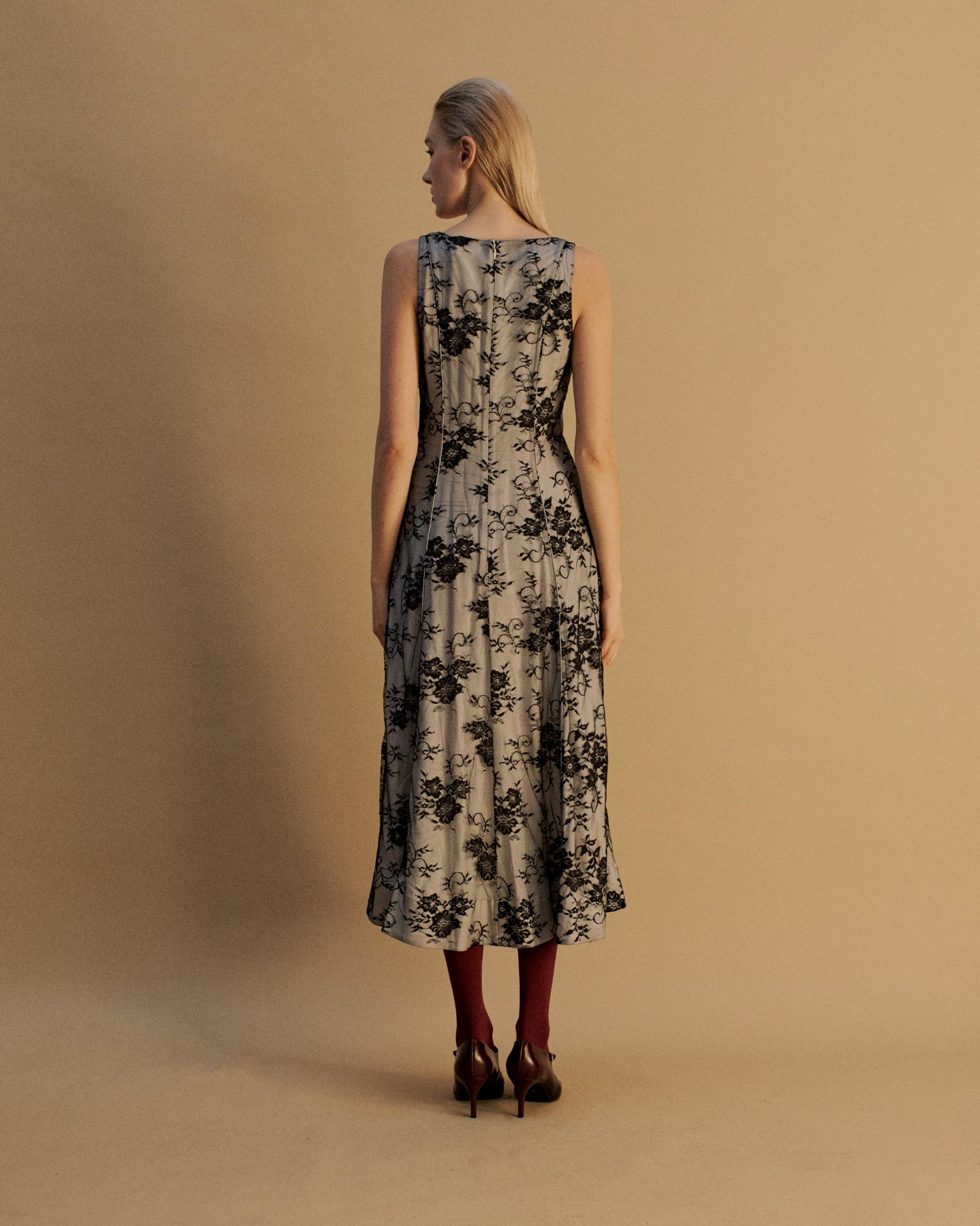 The Ingrid Midi Dress in Black Lace captivates with its delicate black lace overlay and contrasting ivory lining, creating a striking visual contrast. Designed with a deep V-neck and a flattering fit, it elegantly sculpts your silhouette while offering a romantic play of textures. Perfect for making a bold, daring statement at any event.