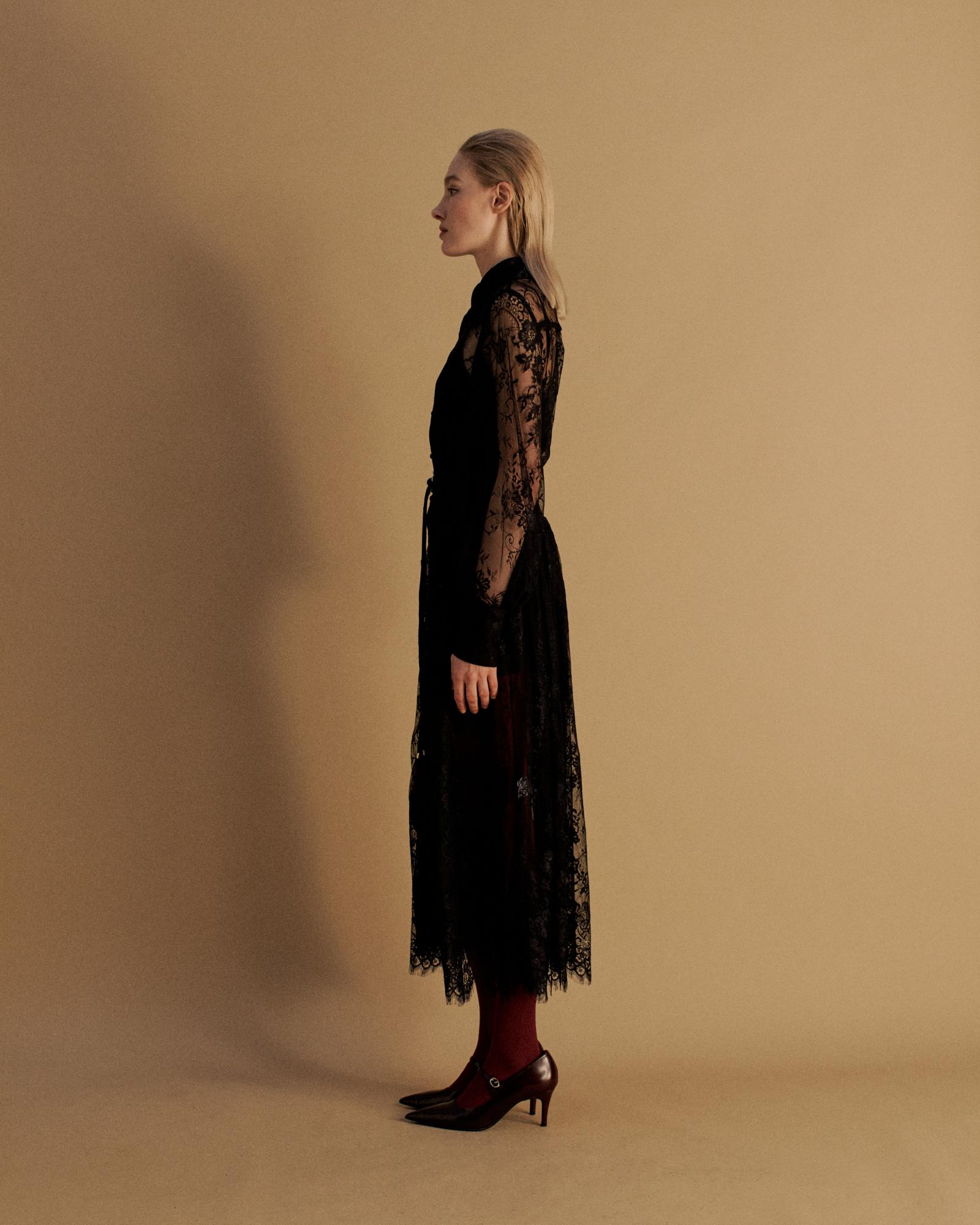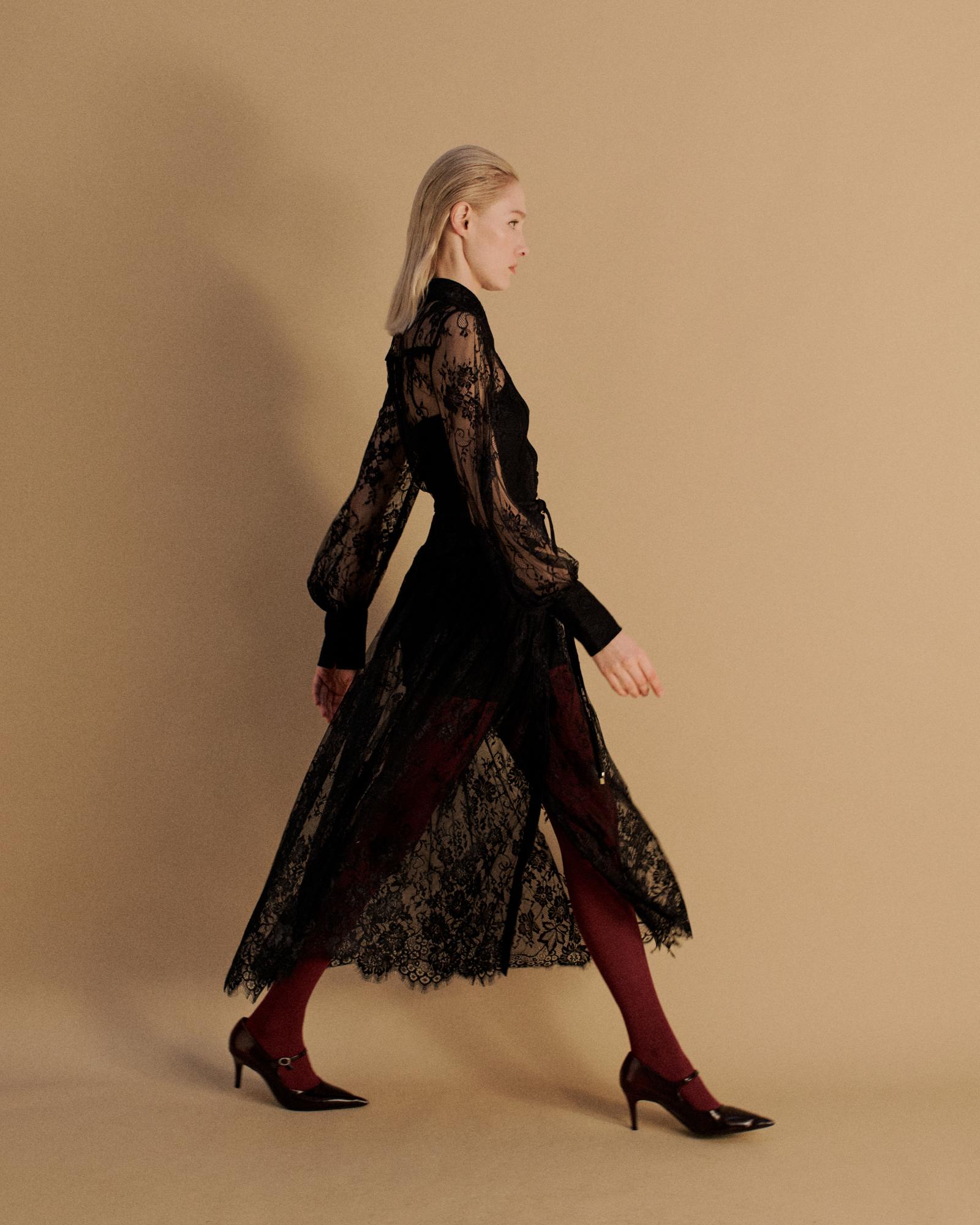 The Nira Shirt Dress features a delicate black lace fabric and a bold drop waist design, enhanced by a button-through front. This dramatic and daring piece is perfect for those who want to make a confident, unforgettable statement.